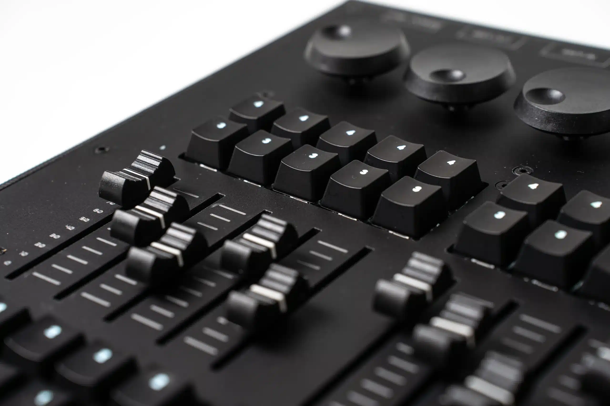 Botones y faders diseñados para fiabilidad en entornos de alto rendimiento.